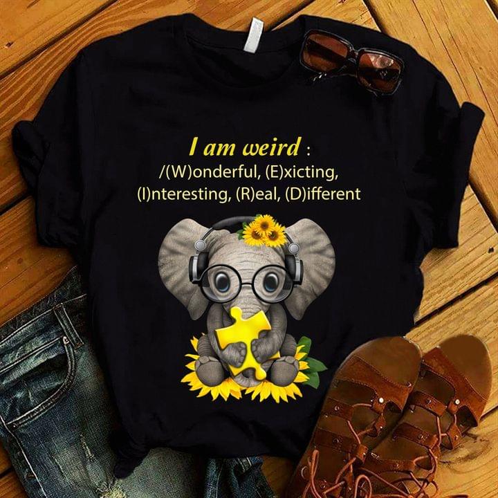 I Am Weird Wonderful Exciting Interesting Real Different Cute Baby Elephant Sunflowers Yellow Ribbon Headphone Shirt