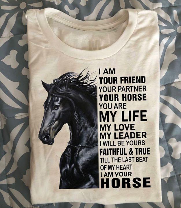 I Am Your Friend Your Partner Your Horse You Are My Life My Love My Leader I Will Be Yours Faithful And True Till The Last Beat Of My Heart I Am Your Horse Black Horse Shirt