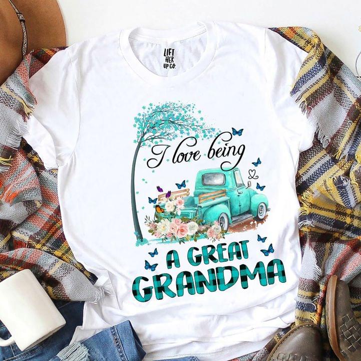 I Love Being A Great Grandma Blue Tree Car Colorful Butterflies Flowers Shirt