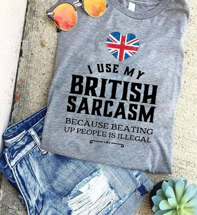 I Use My British Sarcasm Because Beating Up People Is Illegal Flag Of Britain Shirt