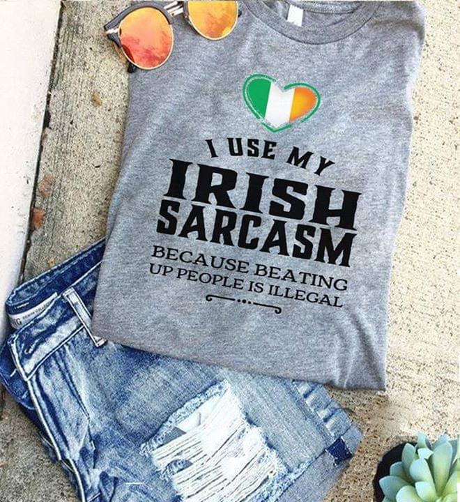 I Use My Irish Sarcasm Because Beating Up People Is Illegal Flag Of Ireland Shirt