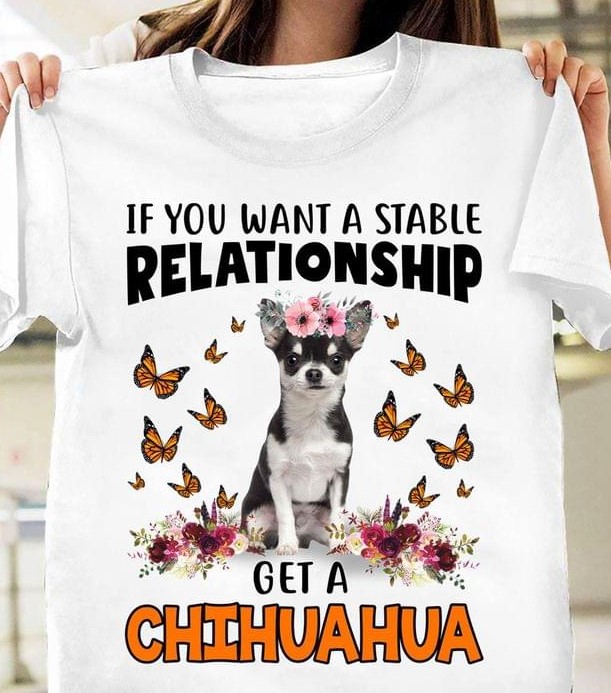 If You Want A Stable Relationship Get A Chihuahua Cute Chihuahua Wearing Flowers Headband Butterflies Shirt