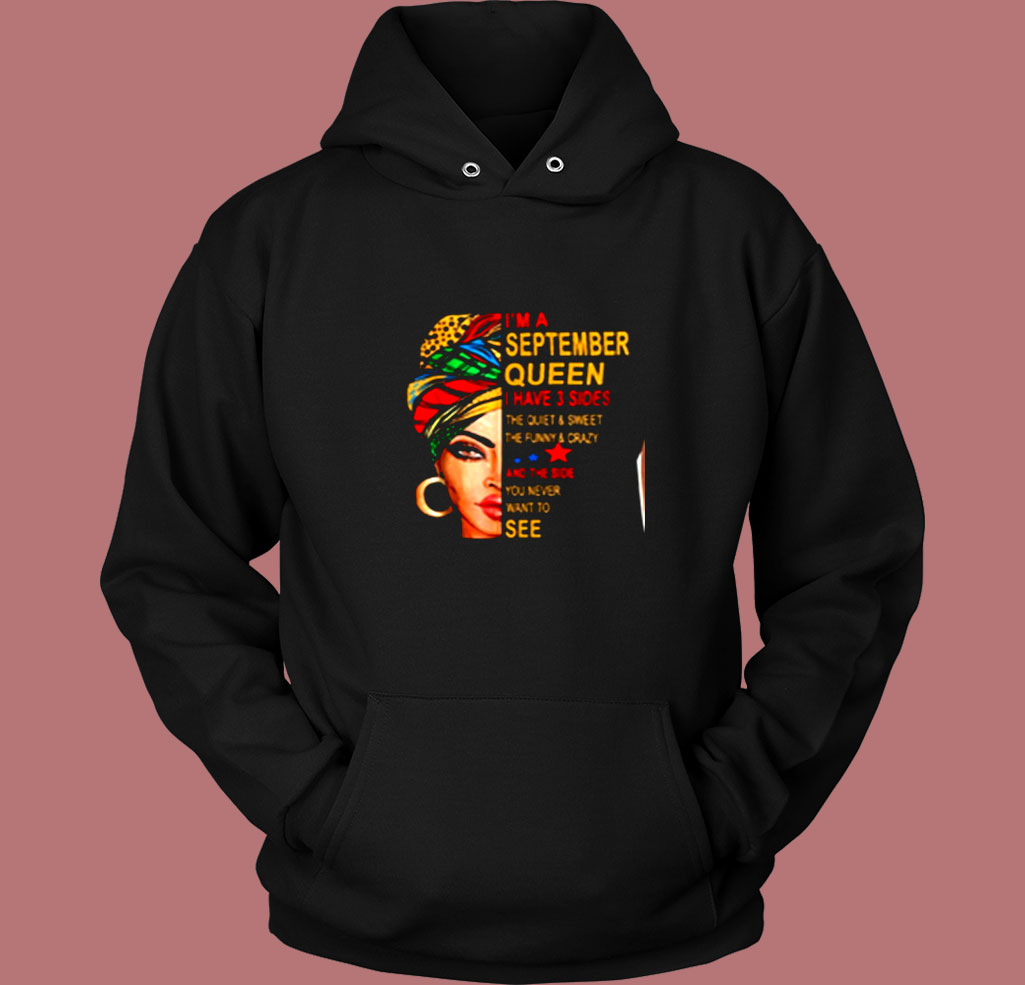 Im A September Queen I Have 3 Sides The Quite Sweet Crazy Melanin Women Vintage Hoodie