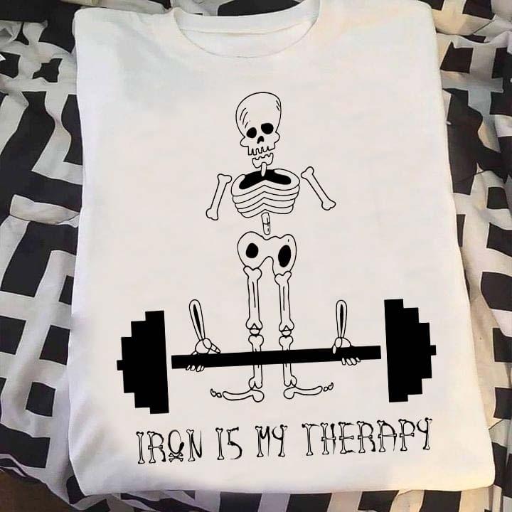 Iron Is My Therapy Skeleton Fitness Gym Shirt