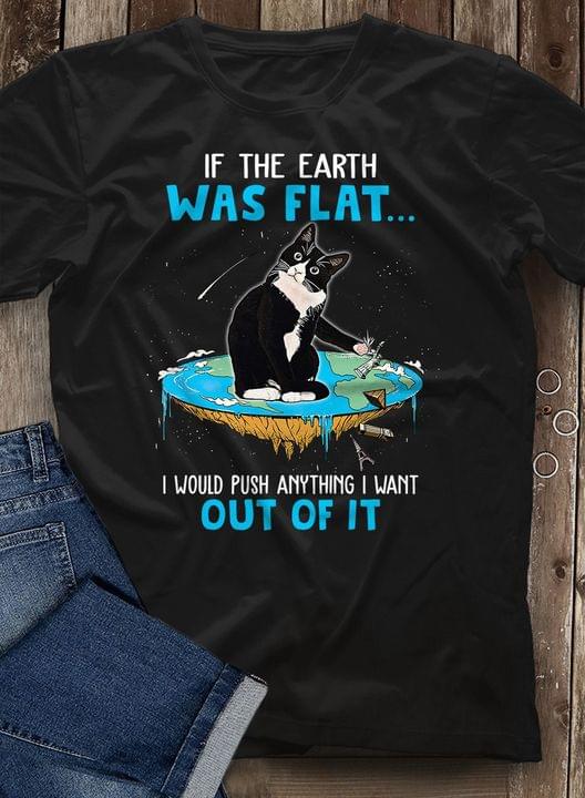 Is The Earth Was Flat I Would Push Anything I Want Out Of It Black Cat Shirt