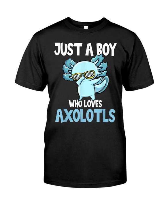 Just A Boy Who Loves Axolotls Cute Blue Cartoon Axolotl Shirt