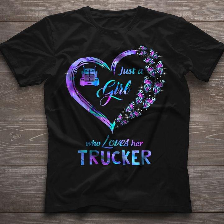 Just A Girl Who Loves Her Trucker Purple Galaxy Heart Butterflies Truck Shirt