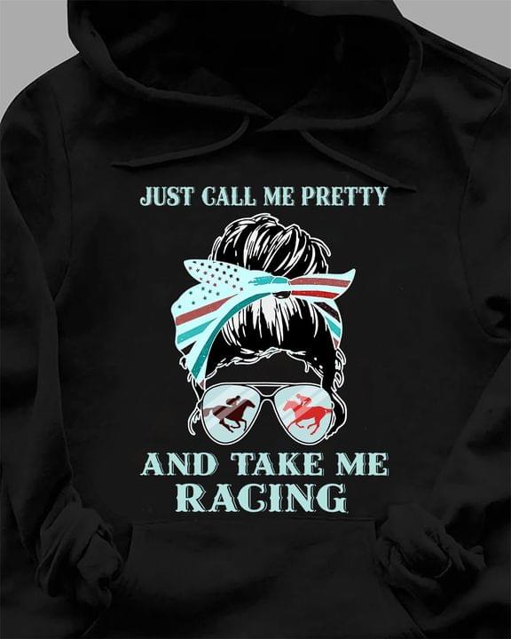 Just Call Me Pretty And Take Me Racing Girl Wearing Sunglasses Horses Shirt