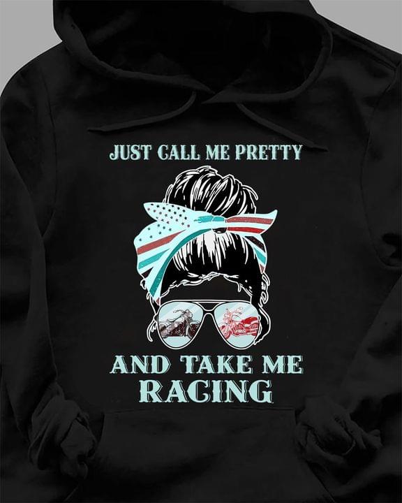 Just Call Me Pretty And Take Me Racing Girl Wearing Sunglasses Motor Shirt