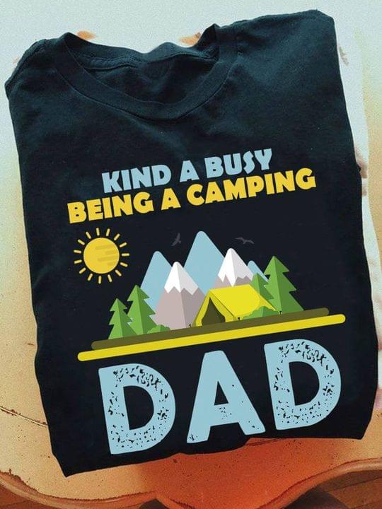 Kind A Busy Being A Camping Dad Mountains Trees Camping Tent Sun Birds Shirt